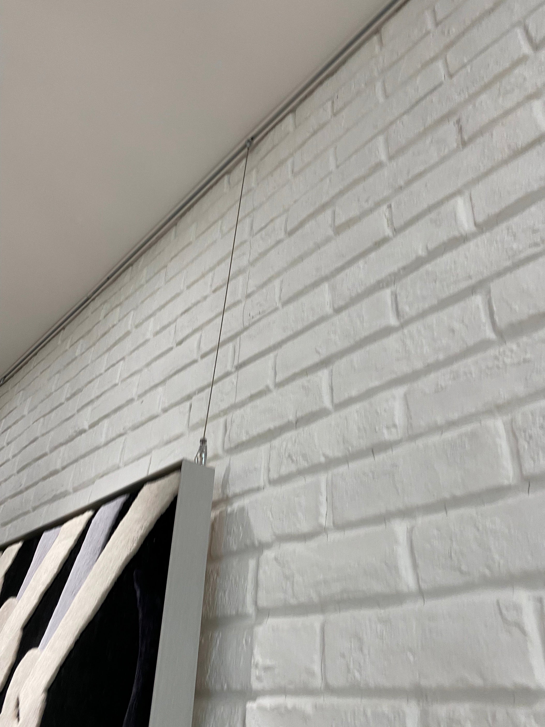 Picture Hanging System Click Rail Kits,in one Set Included Two of White Rails 59", Four of Steel Cables, six of Hooks, Four of end caps, and Installation Hardware