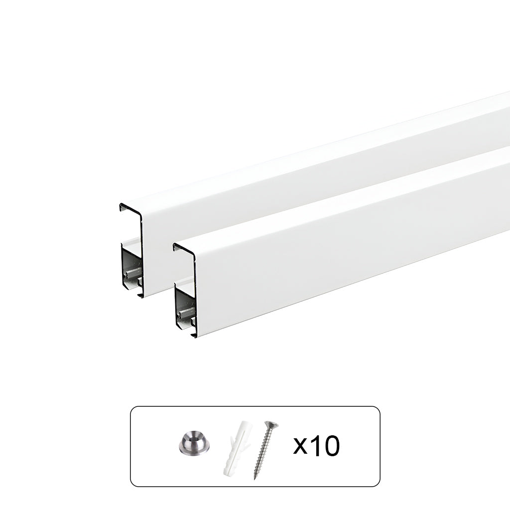 Each set includes two rails, ten mounting clips, and ten plastic wall anchors with screws, ensuring secure and long-lasting performance.